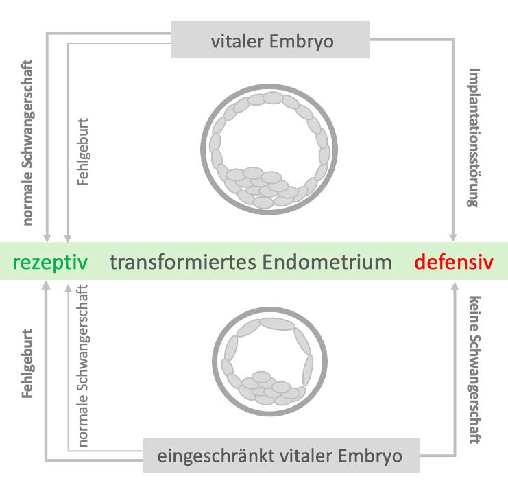 Damit eine Schwangerschaft entstehen kann, muss sich der halbfremde Embryo (genetisch und immunologisch halb Vater halb Mutter) in der Gebärmutter einnisten. Dieser Prozess wird nicht nur durch Hormone, sondern auch durch das Immunsystem der Mutter gesteuert.